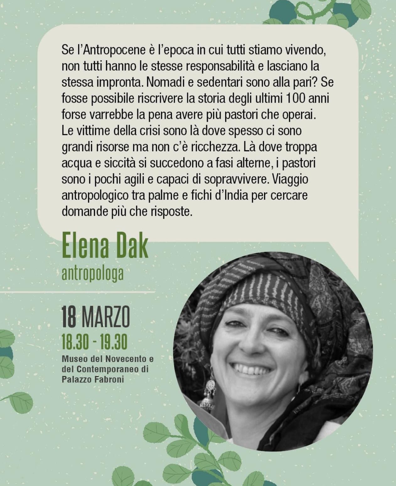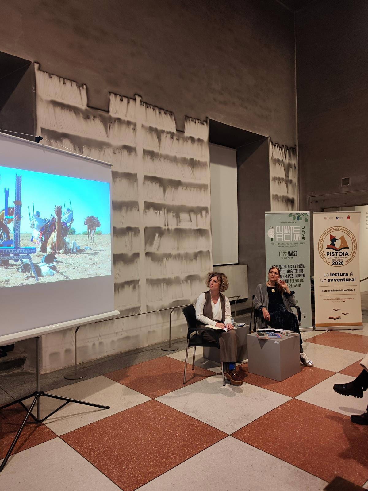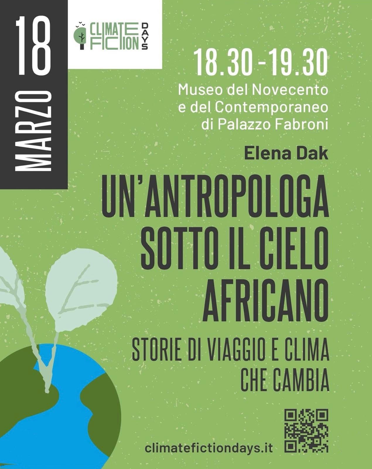 Elena Dak è stata ospite del festival Climate Fiction Days a Pistoia con l’incontro intitolato “Un’antropologa sotto il cielo africano: storie di viaggio e clima che cambia”. Un dialogo profondo sull’Antropocene, per riflettere sulle diverse impronte ecologiche lasciate dall’uomo. Attraverso il racconto del suo viaggio antropologico, Elena ha messo a confronto le sfide e l’agilità delle popolazioni nomadi e pastorali rispetto alle società sedentarie, nei luoghi del mondo dove gli impatti della crisi climatica e della siccità sono più evidenti.