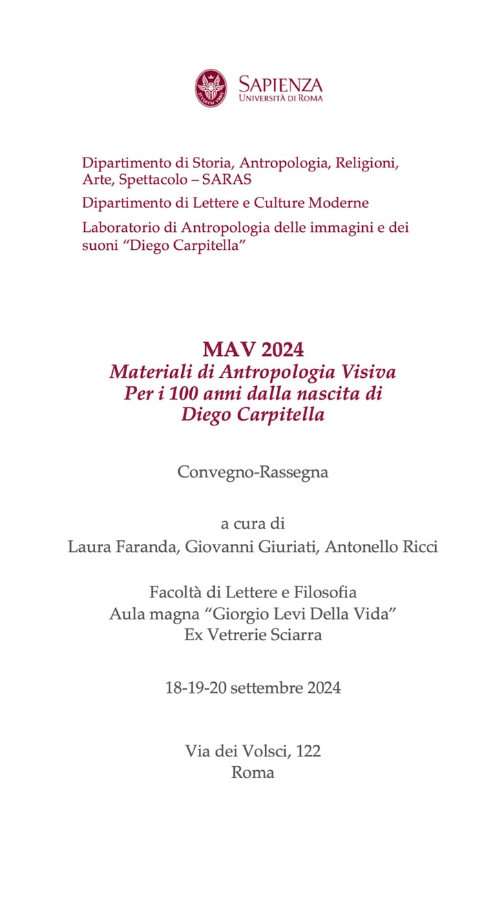 Elena Dak è stata relatrice al prestigioso convegno-rassegna MAV 2024, organizzato per i 100 anni dalla nascita di Diego Carpitella presso l’Università La Sapienza (Aula magna “Giorgio Levi Della Vida”, Ex Vetrerie Sciarra).